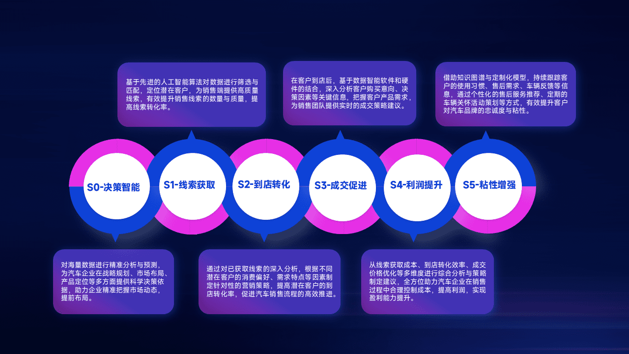 通过拓宽潜在客户来源、、优化线索分配并提高到店转化率,,以增强销售效率。。。同时,,,利用线索数据不断优化分析模型,,,有效提升转化率,,,,扩大营销影响力。。。。